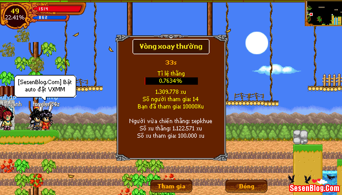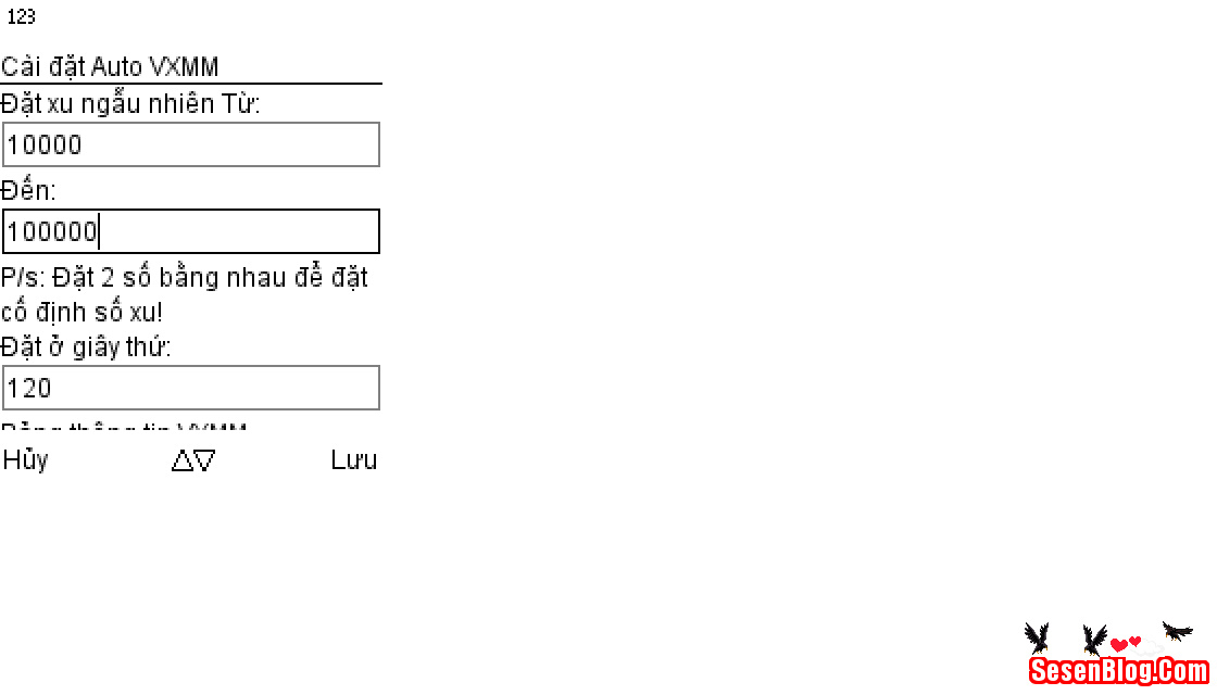 Chắc hẳn các bạn không còn xa lạ gì với chức năng Vòng xoay may mắn trong game Ninja School rồi nhỉ. Và bây giờ cũng có rất nhiều bot treo auto vxmm ở làng Tone chẳng hạn. Để đáp ứng nhu cầu chơi, hôm nay SesenBlog chia sẻ cho các bạn phiên bản Auto VXMM có full 2 chức năng đặt vòng xoay may mắn Thường và vòng xoay may mắn Vip tùy ae chơi vxmm nào, còn có cả chức năng đặt thuê như các bot hiện nay nhé.
