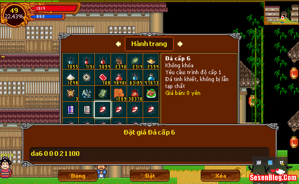 - “da6” là tên viết tắt của vật phẩm, ở đây là đá cấp 6 không khóa.