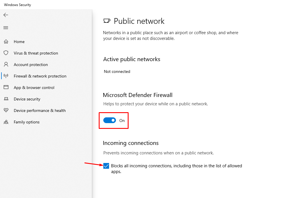 Cách bật/tắt tường lửa Win 10 trong Windows Security