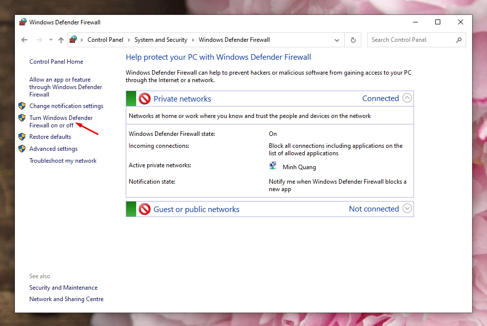 Cách tắt/bật tường lửa với Windows Defender Firewall