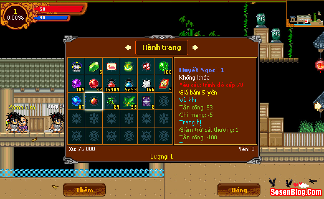 - Huyết Ngọc tăng sát thương lên quái