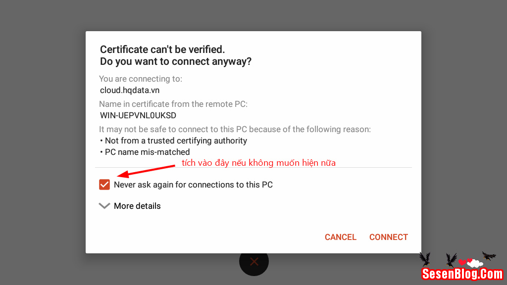 Xác nhận bảo mật bằng cách chọn CONNECT.