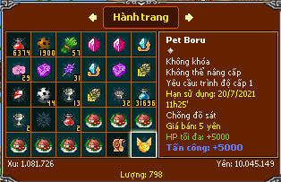 - 10 cúp vàng + 150 lượng = pet chống pk 7 ngày