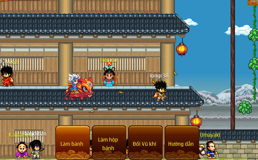 – Các bạn Ninja có thể gặp Goosho để mua giấy thông hành, sau đó lập tổ đội cùng nhau đi tìm các lồng đèn to lớn trên bản đồ.