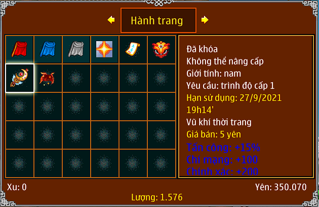 – Lưu ý vật phẩm từ hộp bánh thượng hạng là không khóa . Lân sư vũ không thể mang trang bị thú