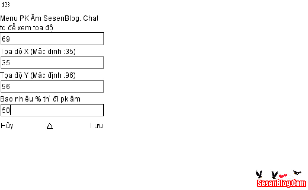 Chat uppk để cài menu pk âm, chat td để xem tọa độ đang đứng