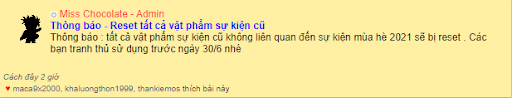 – Khi dùng bánh các bạn phải dọn trống chỗ hành trang nhé. Hành trang đầy sẽ mất quà admin không chịu trách nhiệm.