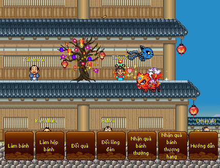 Các bạn đem những lồng đèn trung thu (loại đeo ở trang bị 1) trong sự kiện đến NPC TIÊN NỮ nâng cấp với phí 500k xu hoặc 5 lượng sẽ nhận lại lồng đèn thời trang đẹp hơn (loại này đeo ở trang bị 2) + sẽ được tăng thời hạn +30 ngày. Nếu may mắn bạn sẽ nâng cấp thêm được thuộc tính “Miễn giảm sát thương 100% [CHỐNG ĐỒ SÁT] “